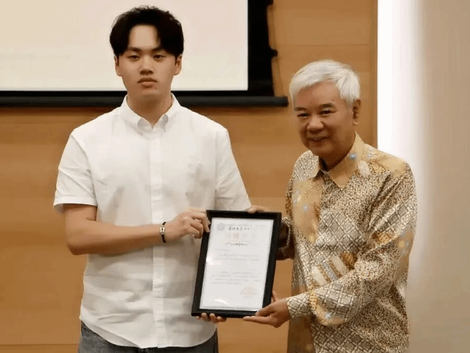 中国-东盟海洋学院本科生Tan Ru En代表学院师生向戴民汉院士、高龙校友表达诚挚感谢。她表示,这些慷慨支持不仅为学院的科研和教学提供有力保障,为学院发展注入新的动力,也激励同学们积极投身学术研究,探索海洋领域的奥秘,对未来的学习与科研充满信心。