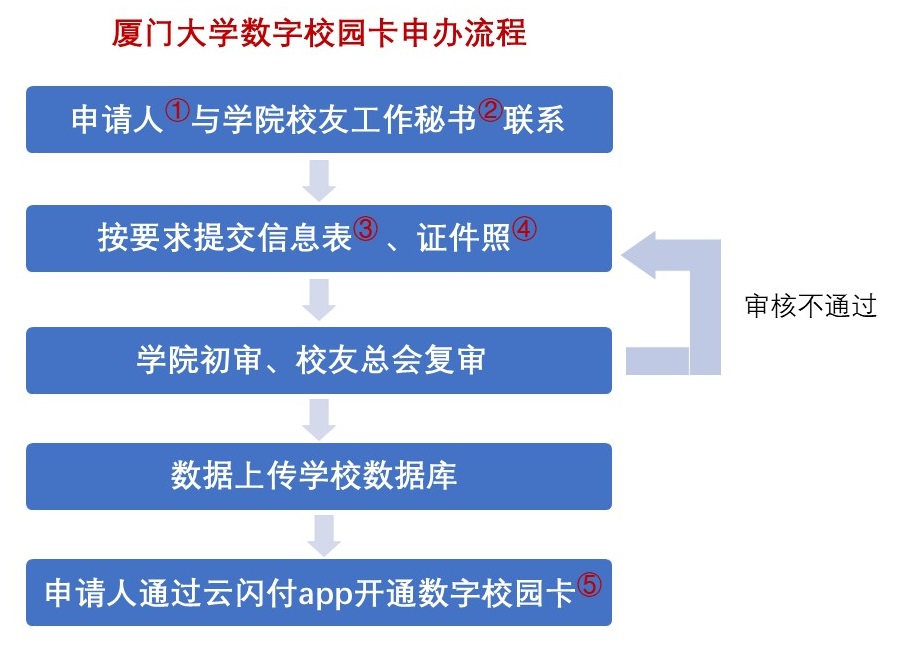 校友请按照“厦门大学数字校友卡申办流程”申办数字校园卡,以下两种情况的校友无须申办,可自行开通。
