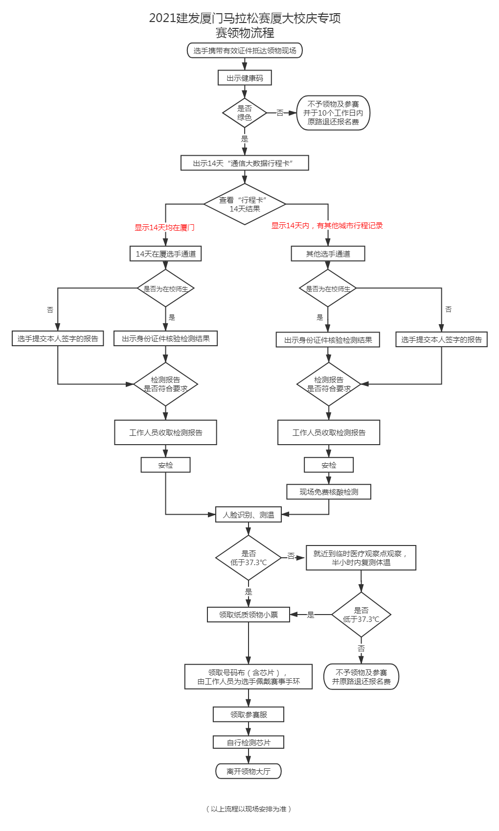 注:参与厦大校庆专项赛的师生跑者,将由校方统一组织进行集体核酸检测,检测结果将由医院统一出具检测结果,师生赴现场领取参赛包时无需携带个人检测报告。