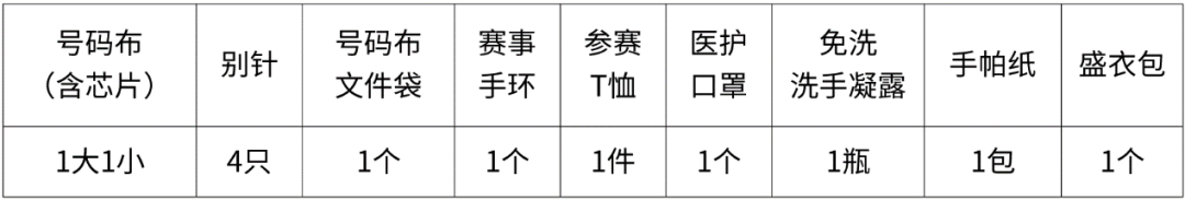 注:领物前收到赛前体检不合格温馨提示的师生选手,需携带二次体检(心电图)合格报告或由本人、监护人或直系亲属签字的温馨提示中的“物资领取回执单”,方可领取参赛号码布,否则不予发放。