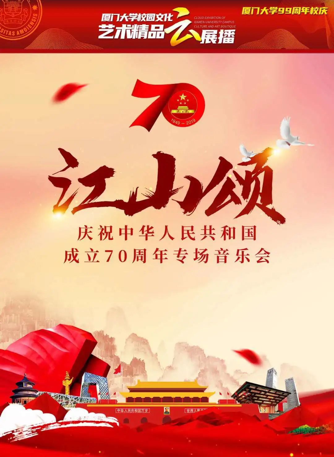 2019年9月29日和30日晚,厦门大学庆祝中华人民共和国成立70周年专场音乐会《江山颂》分别在思明校区和翔安校区举行。师生们在歌曲声中共同歌唱伟大的党、伟大的祖国,弘扬爱国奋斗精神。
