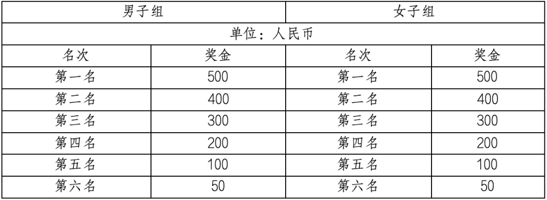 2.教职工组分别录取前六名,前六名分别获得奖金,前三名颁发奖杯一座,奖牌一枚。