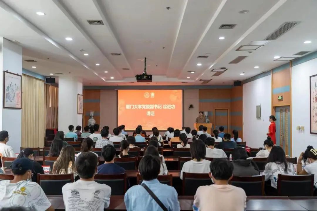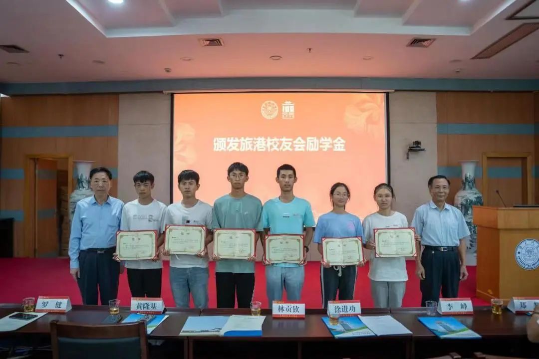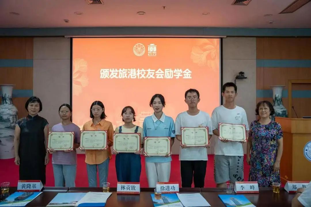 国庆前夕,2022年旅港校友会励学金颁发仪式在思明校区颂恩楼220报告厅举行,为18名获得今年旅港校友会励学金的同学颁奖。校党委副书记徐进功,厦门大学旅港校友会荣誉理事长、1979级经济系校友林贡钦,旅港校友会理事长、1978级外贸系校友黄隆基,福建省闽浙赣边区革命史研究会会长、1977级历史系校友罗健等出席仪式。