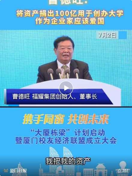 厦门不仅有着优质的营商环境,还有着企业家办学的优良传统。各位校友要将自己的命运与国家的发展紧密连接起来,定位于新时代的建设者和推动者,与社会各行各业一起,共“为吾国放一异彩”。