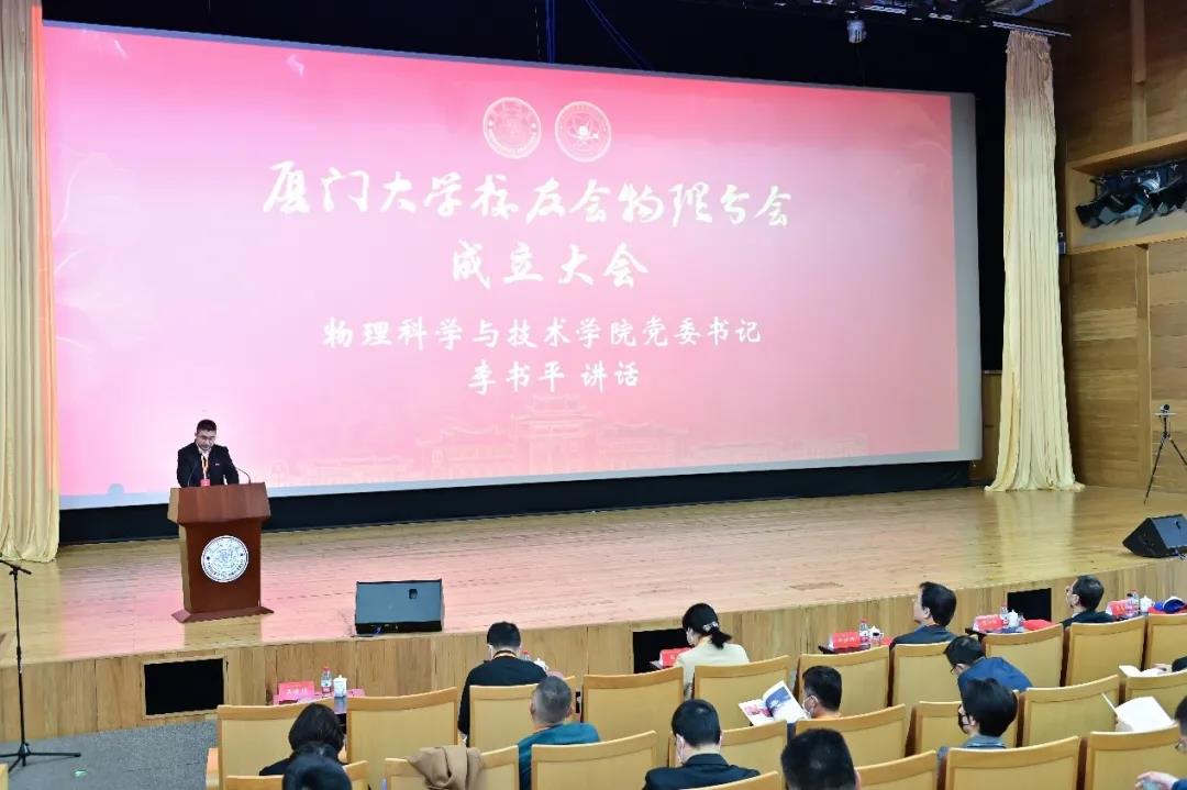 物理科学与技术学院党委书记李书平发表讲话,他总结了厦大物理近年来的光辉发展历程,肯定了广大校友在各自岗位上取得的成就。他表示,2023年是厦大物理学科建设百年,希望校友们能一如既往地关心和支持学院的发展。