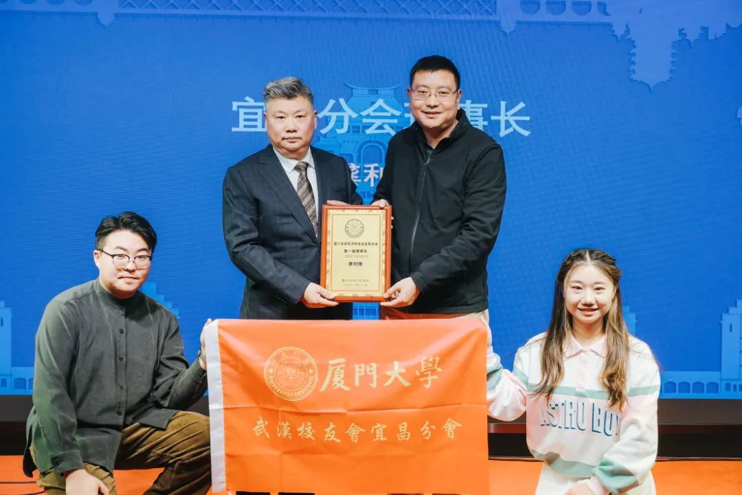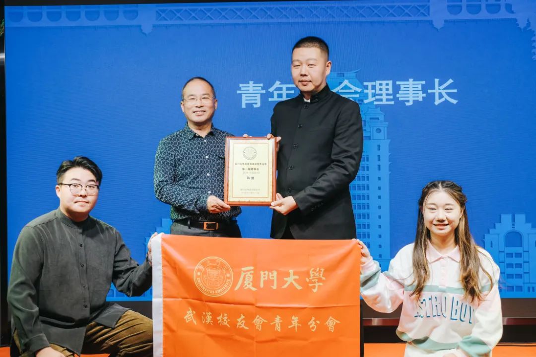根据厦门大学武汉校友会章程,现场公布了新一届校友会理事会成员。厦门大学校友总会副理事长赖虹凯、秘书长张伟,为李斌授牌、授旗。李斌发表了连任宣言,表示将竭尽全力,全心为校友们服务。李斌和常务副理事长傅家玉,随后为新成立的宜昌分会理事长龚利锋、青年分会理事长韩维授牌、授旗。