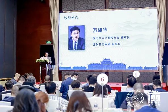 厦门大学上海校友会理事长万建华校友在致辞中回顾了联谊会筹建的缘起,并感慨一次校友间的偶然提议,在短短三个月内成为现实,是厦大校友强大凝聚力的充分体现,高度肯定了林忠校友领导的联谊会筹备团队的高效与投入,并对联谊会的规范化管理运作提出了宝贵意见与建议。