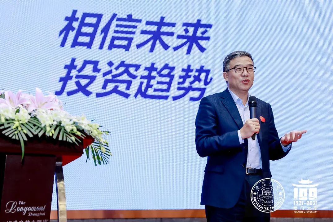 主旨演讲环节,东方富海创始人陈玮校友发表了题为《相信趋势,投资未来》的演讲,分享了20余年股权投资经验,分析了社会主义新时代背景下我国股权投资的新特点、新趋势,强调数字化、智能化、技术进步浪潮可能带来的深刻变革以及对我国社会的长远影响。