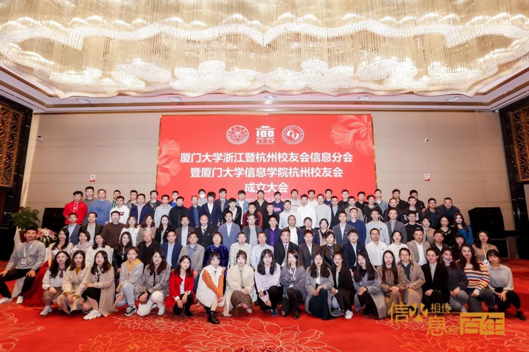 2021年11月14日下午,厦门大学浙江暨杭州校友会信息分会暨厦门大学信息学院杭州校友会成立大会在杭州千越君亭酒店钱江厅隆重召开。厦门大学校友总会副理事长赖虹凯、秘书处秘书长张伟、副秘书长郑辉一行,信息学院党委书记刘弢、院长舒继武、党委副书记郑镇锋以及各系教师代表,厦门大学浙江暨杭州校友会执行会长徐振晓、秘书长余秀旸及理事成员、兄弟分会会长,信息学院兄弟校友会秘书长代表出席大会,学院在杭百余位校友齐聚一堂,畅叙母校情谊,共同见证厦门大学信息学院杭州校友会的成立。大会由厦门大学浙江暨杭州校友会外文分会秘书长笪舒扬主持。
