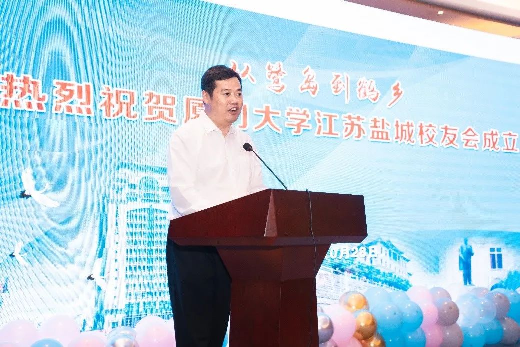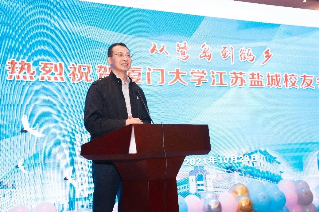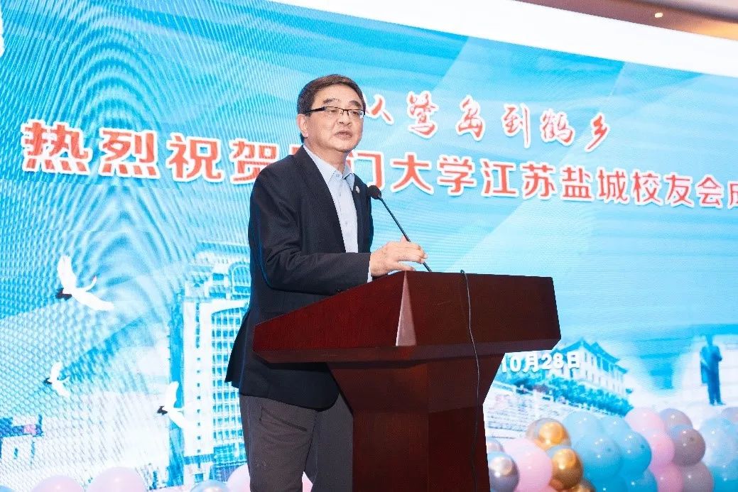 赖虹凯代表厦门大学校友总会对江苏盐城校友会的成立表示热烈祝贺。他深情回顾了母校百年的优良办学传统与办学特色,介绍了厦门大学百年校庆举办情况,传达了习近平总书记致厦门大学建校100周年贺信精神。他高度肯定了校友们为母校事业发展作出的积极贡献,殷切期望江苏盐城校友会能够成为广大盐城校友共同的精神港湾,推动校地合作再上新台阶、再展新成就。