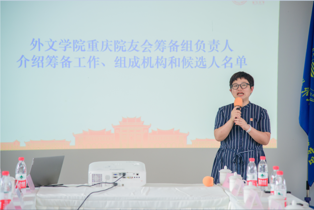 筹备组代表、1995级英语系校友邹柳向与会代表介绍了重庆校友会外文分会暨外文学院重庆院友会的筹办概况。她表示本次筹备工作得到了校友总会、外文学院、重庆校友会的关心和支持;在广大外文院友的积极参与下,各项工作均已顺利完成。