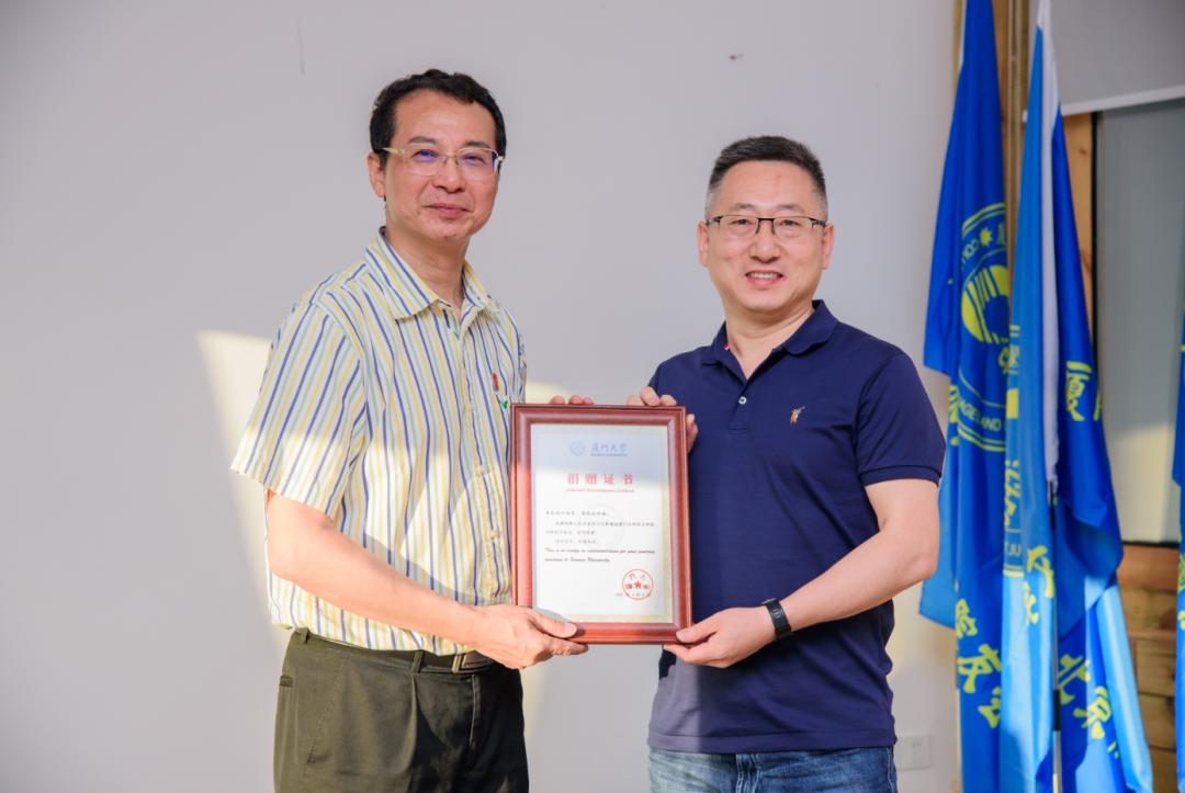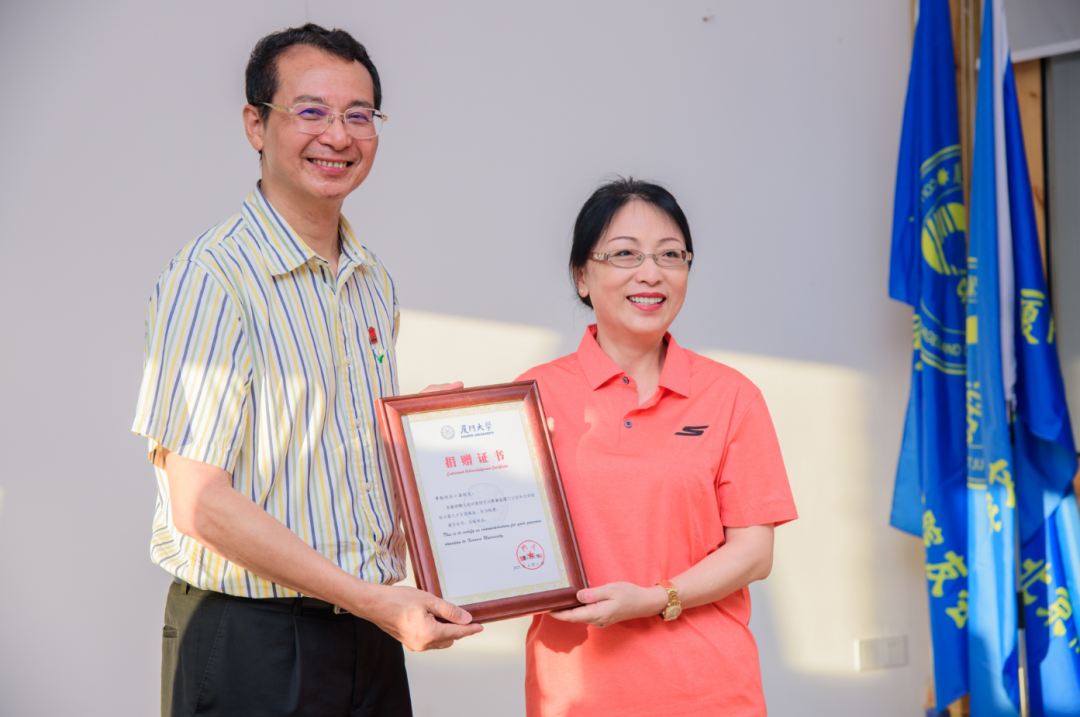 会上,赖虹凯还代表母校向孙小荔、于树军校友颁发了百年校庆捐赠证书。