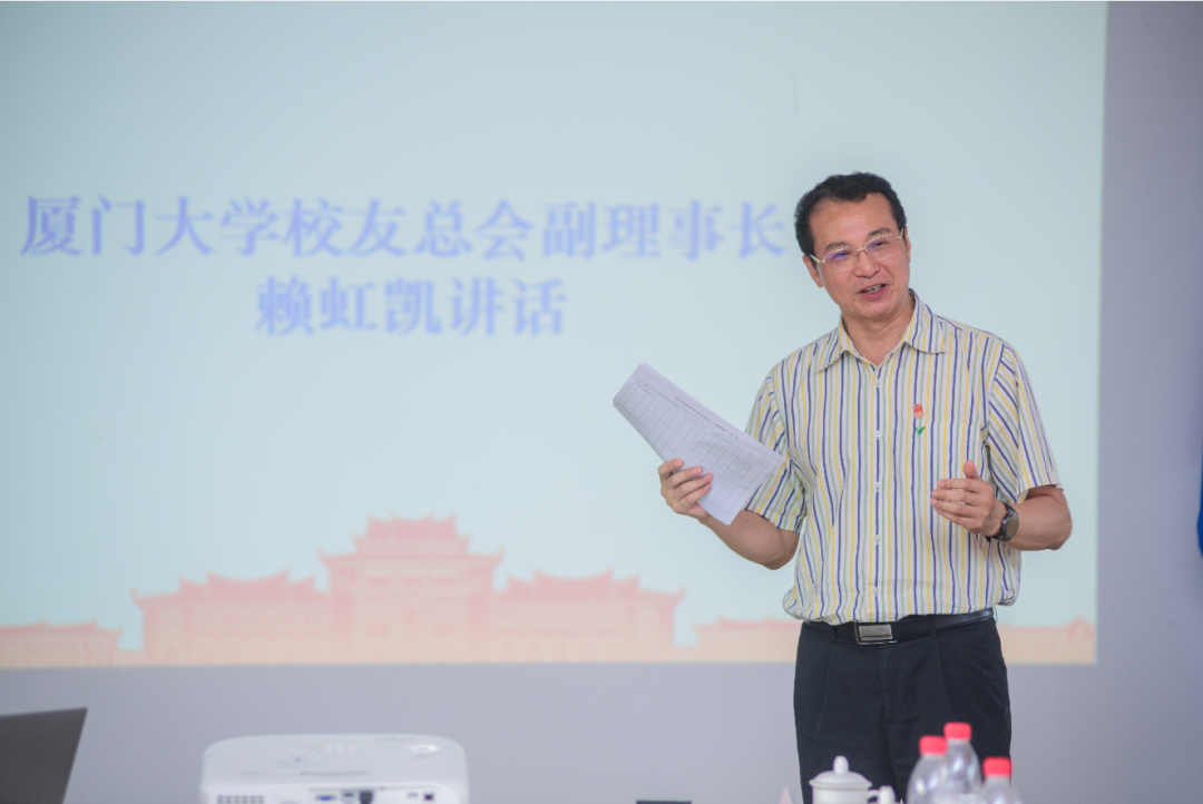 赖虹凯代表母校对重庆校友会外文分会暨外文学院重庆院友会的成立表示祝贺。他指出,为深入贯彻落实习近平总书记关于“讲好中国故事,传播好中国声音,展示真实、立体、全面的中国”重要指示精神,外文分会成立后要主动凝聚校友资源、汇聚校友合力,发挥外语类学科优势,弘扬传播中华优秀文化,为加快构建中国话语和中国叙事体系,广泛宣介中国主张、中国智慧、中国方案,深入开展各种形式的人文交流活,全面提升国际传播效能作出厦大外文人力所能及的贡献。赖虹凯还向参会人员介绍了厦门大学百年校庆周的主要活动举办情况,期待外文分会能在搭建校友沟通互助平台、为母校发展献计献策上、推动校友及母校事业共同发展等领域发挥更加积极主动的作用。