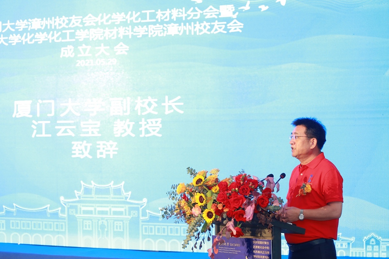 厦门大学副校长江云宝,化学化工学院党委书记宋毅、院长谢兆雄教授,材料学院院长彭栋梁,校友总会副秘书长郑辉,化学化工学院副院长吕鑫、陈晓兰,材料学院党委副书记马兆海,漳州校友会执行会长兼秘书长吴两同、常务副会长吴炳龙、副会长郭少泽、蔡津津、张荣仁等嘉宾出席会议。1984级电化学专业校友黄渊斌主持会议。