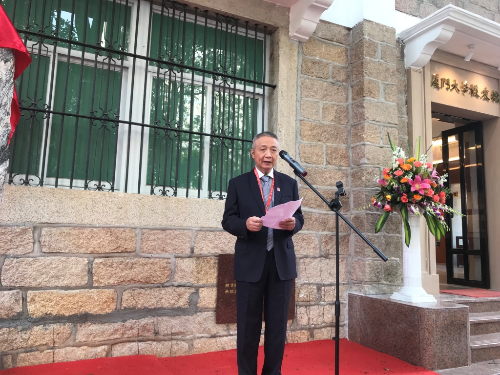 4月7日下午,厦门大学校友馆揭牌开馆活动在思明校区大南6号楼举行。陈嘉庚先生后裔陈立人,校党委书记张彦,副校长、校友总会副理事长邱伟杰,校友总会副理事长詹心丽,校友馆主要捐资人、1978级中文系校友、福建华闽进出口有限公司董事长刘平山,福州校友会原会长叶文振、副会长林冰共同为校友馆揭牌。