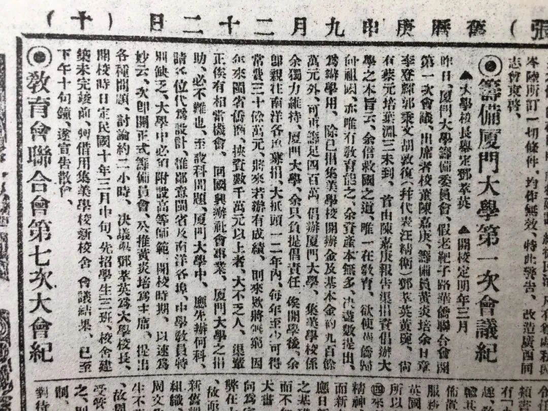 图|1920年11月2日,《申报》报道厦门大学筹备委员会第一次会议