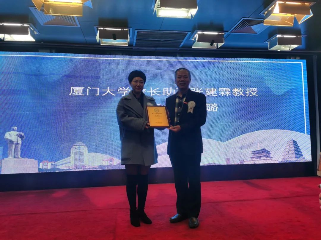 厦门大学校长助理张建霖教授到会祝贺,为前任会长苏新雷颁发厦大校友服务奖,并为新任会长仇璐授牌。张建霖高度肯定了陕西校友会两任会长的工作,并表示厦大是厦门市一张亮丽的名片,她山美水美人更美。希望厦大人一定要把这张名片擦得更亮,引领社会进步,传承嘉庚精神。厦大与陕西校地情缘深厚,八百里秦川路上,我们要讲好厦大免费米饭的故事,先天下之忧而忧,后天下之乐而乐。拳拳赤子心、殷殷爱国情,校主陈嘉庚先生忠公体国、无私无畏的社会责任感和爱国情怀,激励着南强学子情洒三秦大地,为祖国建设奉献心力。
