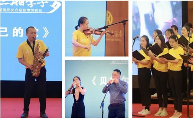 新一届毕业到湖南参加工作的“后浪”代表也上台来发表心声,多才多艺的校友们还带来自创的节目。如泣如诉的萨克斯演奏、悠扬动听的小提琴独奏、空灵缥缈的陶笛二重奏……一个个精彩的节目收获了现场热烈的掌声,也展示着湖南校友会的勃勃生机。
