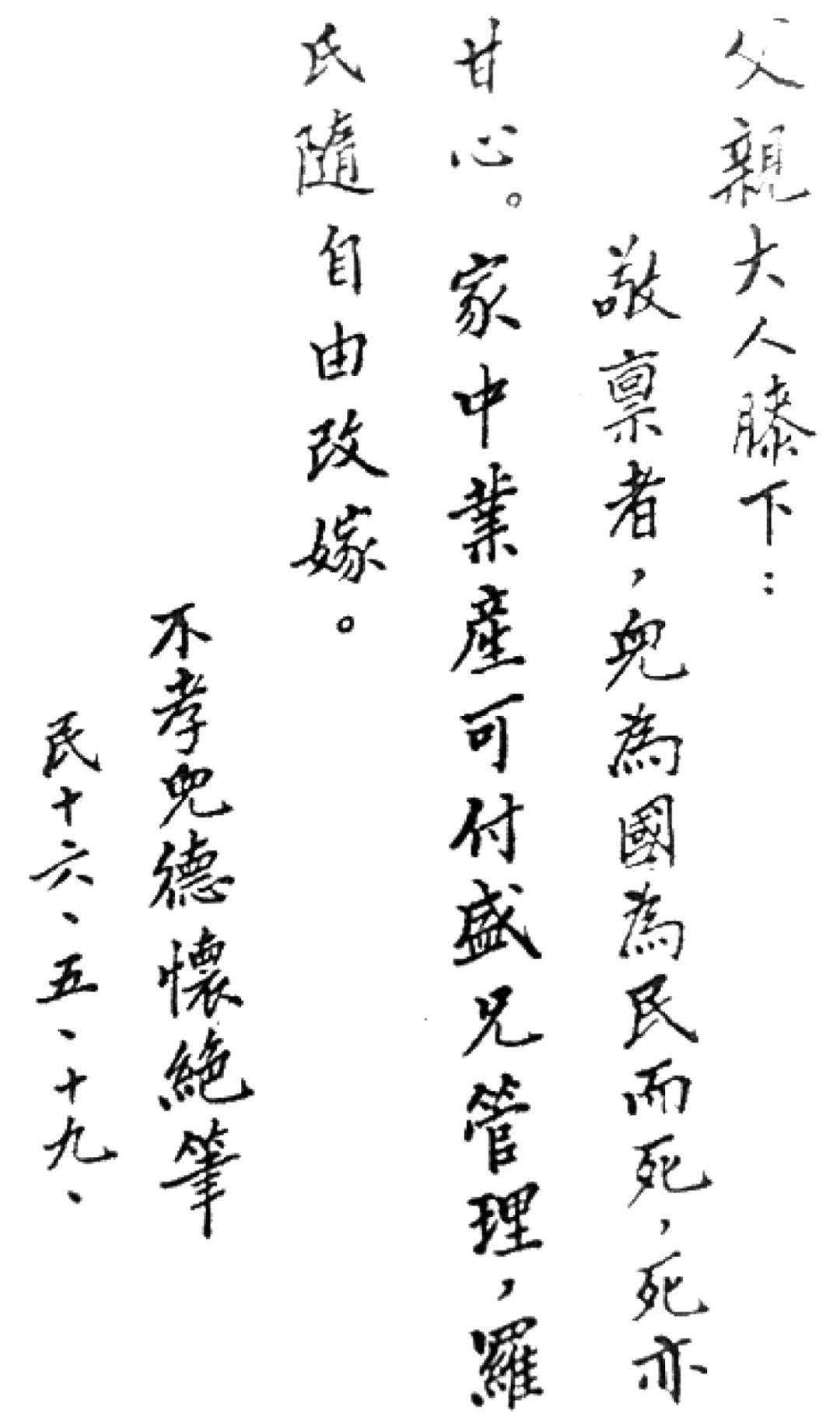 龙岩籍厦大学子也在革命运动中快速成长。杨世宁,龙岩松洋村人,1925年进入厦大学习。曾任中共厦门市委和闽南特委委员、厦门总工会副委员长,参与领导厦门市工人掀起“二五”加薪运动,形成波及全岛的“罢山罢海”革命大风暴,是著名的工人运动领袖。厦门“四九”反革命政变中,他不幸被捕,“革命不怕死,怕死不革命,只要革命能成功”,困境中更显英雄本色。在给父亲的家书里,他写下“儿为国为民而死,死亦甘心。”1927年6月2日,杨世宁英勇就义,用短暂却波澜壮阔的一生诠释着厦大革命精神的内涵与真谛。