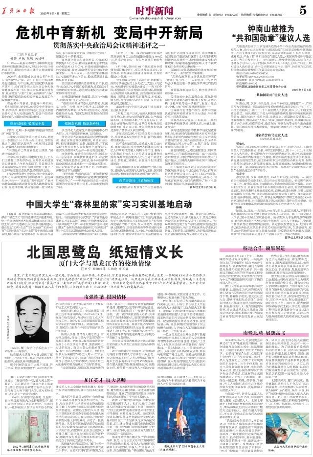 黑龙江籍学者在厦大多个学科领域深耕、发光:马克思主义与中国发展研究所所长张艳涛教授,绥化人;台湾研究院副院长张羽教授,伊春人;在证监会、上交所、深交所里打造 “移动课堂”的法学院肖伟教授,齐齐哈尔人……他们以自己对教学与科研的认真执着共同为学校的人才培养贡献着力量。
