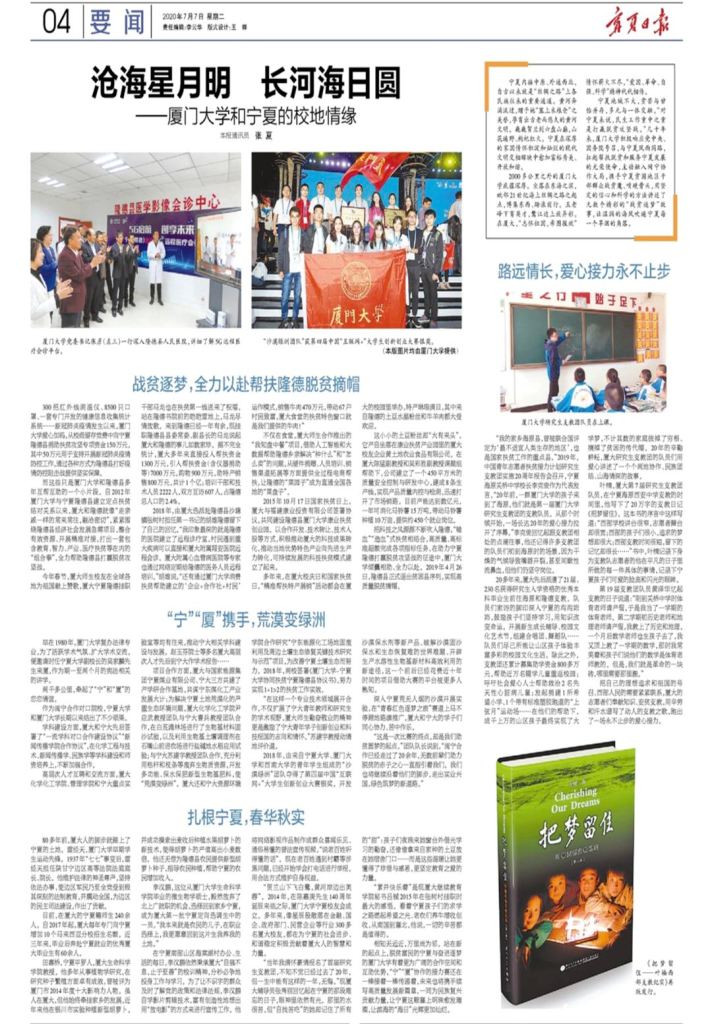 宁夏幅员不大,这里贫苦与甘饴并存,多元与一体交融。“对宁夏来说,民生工作重中之重是打赢脱贫攻坚战。”几十年来,厦门大学积极响应党中央、国务院号召,与宁夏风雨同路,扛起帮扶脱贫和服务宁夏发展的光荣使命,主动融入闽宁协作大局,携手宁夏贫困地区干部群众战贫魔、啃骨头,用坚定的信心和科学的方法讲述了无数个精彩的“战贫逐梦”故事,让温润的海风吹遍宁夏每一个旱涸的角落。