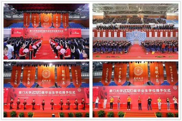今年的学位授予仪式别具一格,活动现场悬挂着“自强不息,止于至善”“致吾知于无央,充吾爱于无疆” ”今日南强学子青春无悔,明日社会栋梁建功立业”“同学年少风华正茂,乘风破浪海阔天高”等巨大条幅,翔安校区的学位授予仪式还包括青春歌曲合唱、诗朗诵,放飞写有学生签名和寄语的彩色气球等环节。