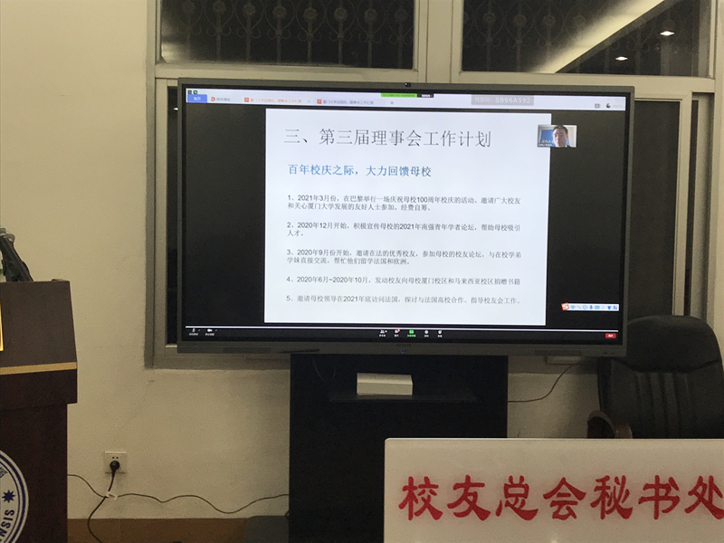 会议还就校友会向母校及马来西亚分校捐赠法文图书、发动海外献礼母校百年校庆等专项工作进行了交流讨论。