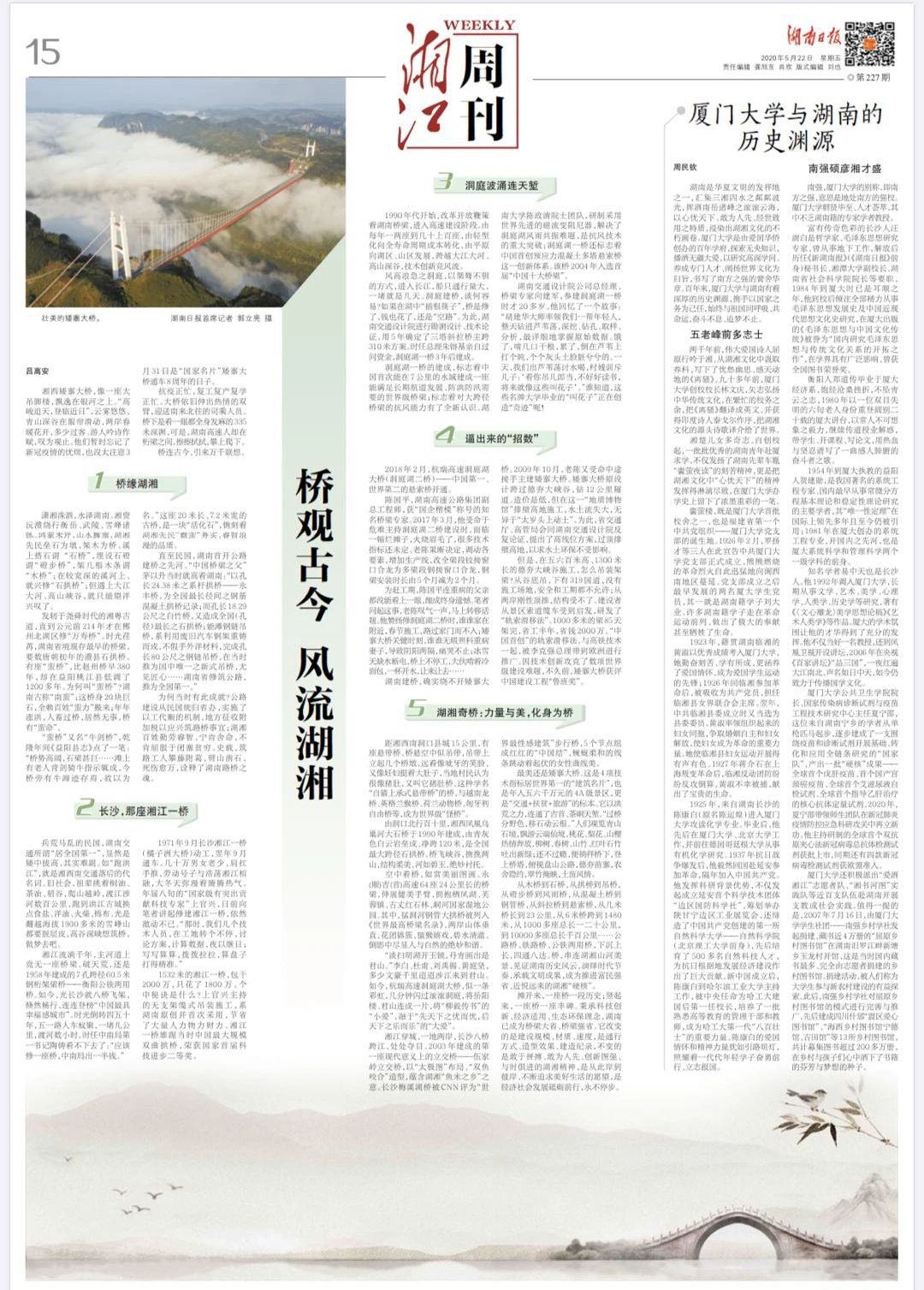 处江南而相望兮,源远而流长;得英才以教育兮,自强以报国。当前,厦门大学正加快建设中国特色世界一流大学的步伐,湖南省建设富饶美丽幸福新湖南的号角也已吹响,校地间的情缘将在深化交流合作、携手砥砺奋进之中更加深厚隽永,在助力国家富强、推进民族复兴之中更加弥足珍贵。
