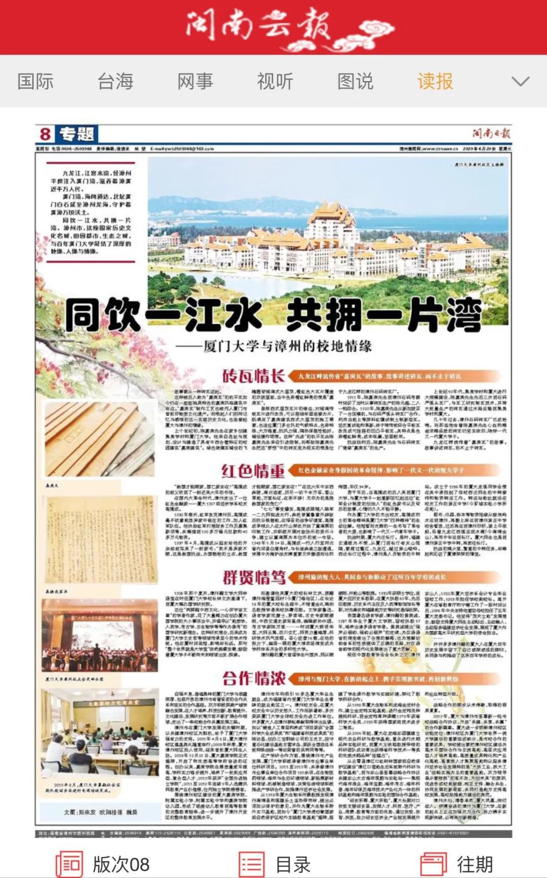 同饮一江水,共拥一片湾。漳州市,这座国家历史文化名城、田园都市、生态之城,与百年厦门大学凝结了深厚的地缘、人缘与情缘。