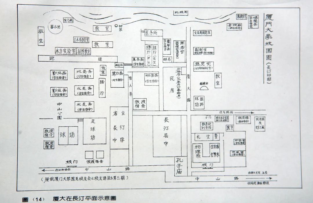 厦大内迁得到了长汀人民的竭诚支持。迁校之初,长汀就腾出了驻汀行署一部分和孔子庙,以及大批民房作为校舍,使厦大师生有了一个较好的生活学习环境。后来,为了适应厦大发展的需要,长汀县又拨出虎背山南麓旧中山公园土地共57亩,在两三年间兴建了各类教室、阅览室、实验室、图书馆、实习工厂、男女生宿舍,以及篮球场、大膳厅、蓄水池、发电厂等设施。之后,长汀又拨出东门外及卧龙山麓的大片土地及房屋,建成了10多座教职员宿舍,并扩建了厦大医院。经几年努力,厦大的校舍连成一片,几乎占据了半个长汀城。