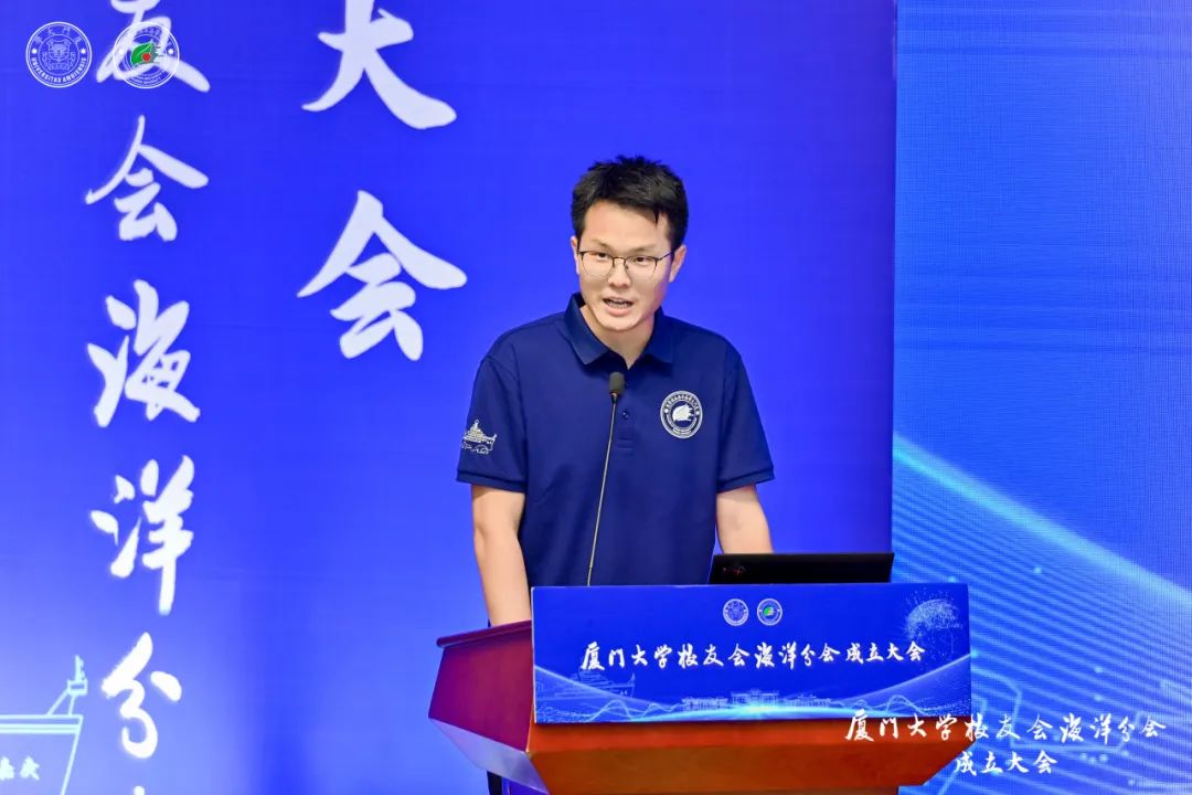 他认为厦门大学校友会海洋分会的成立对于校友凝聚力量、振奋精神、开拓创新,在更高起点上推动学科高质量发展具有深远的意义。海洋分会是校友共叙友情、互通有无、重温师恩、反哺母校的良好平台。作为厦大海洋人,作为学院实现可持续发展的重要资源和力量,他将和每位校友持续关心和支持母校、母院事业的发展,不遗余力、竭尽所能、发挥所长,将海洋分会做大做强,为母校、母院的建设发展贡献智慧和力量。