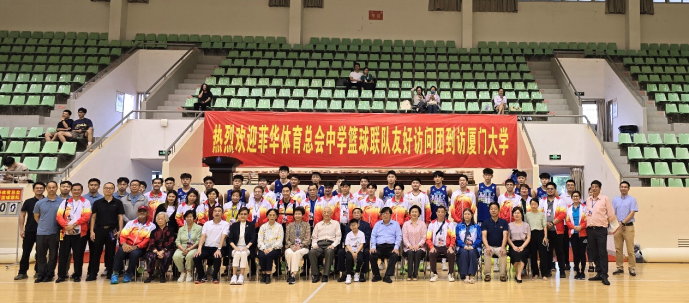 下午四点,菲华体育总会中学篮球联队与厦门大学高水平篮球队在思明校区明培体育馆举行篮球交流赛。厦门大学校党委原书记吴宣恭、黄良快、校党委原副书记陈力文、詹心丽、佘施淑好、陈著远、菲华体育总会理事长佘怡静等出席活动。