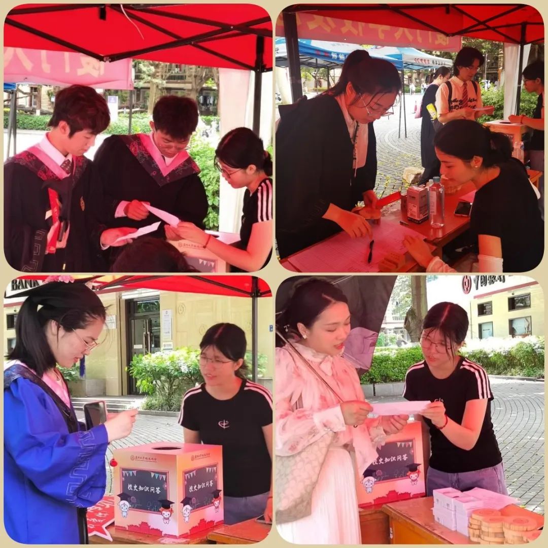 “校史知识问答”现场,毕业生同学热情参与,重温母校百年校史,加深对母校人文传统认同感、自豪感,唤醒大家在“厦园”追寻先贤、笃行不怠的独特记忆。秘书处为参与活动并成功答对规定数量题目的同学送上校园文创纪念品,提供来自母校的温情关爱。