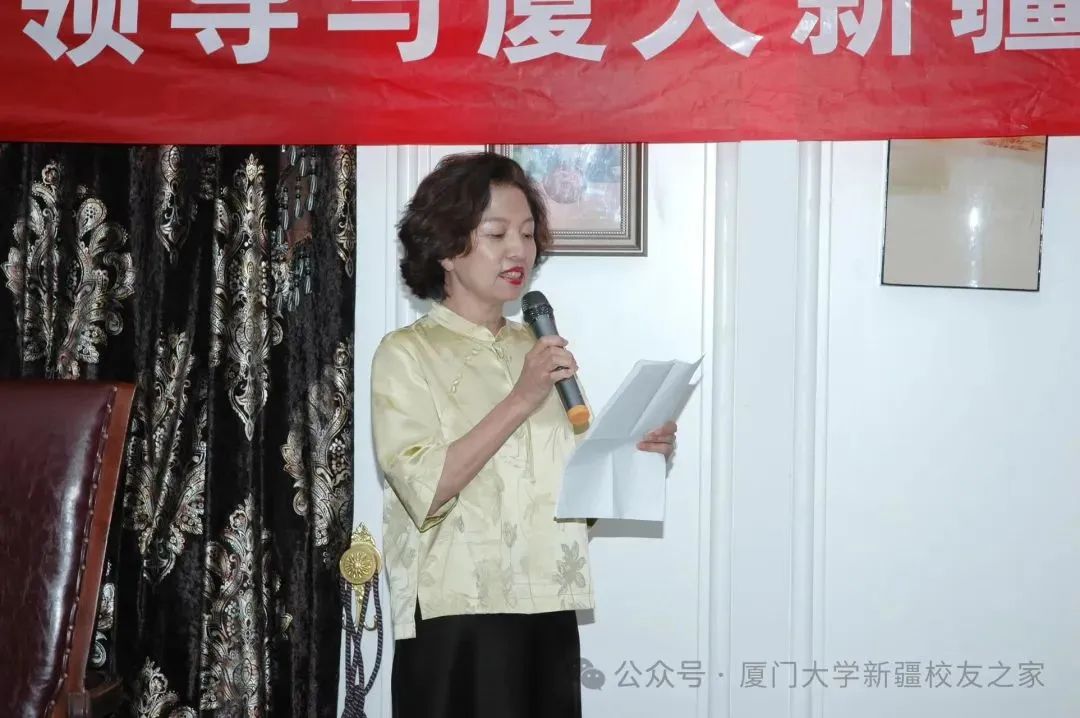 邓朝晖在讲话中深情回顾在新疆工作生活的三年美好时光,细数与新疆校友建立的深厚感情。她表示,新疆拥有美丽的自然风光、浓厚的地域文化,更拥有奋战在各条战线的优秀厦大校友,是自己最想念的第二故乡。她向校友介绍母校近年来取得的显著办学成绩,给新疆校友带来极大鼓舞与激励。她希望新疆校友会团结带领在疆校友,以优异成绩为纪念陈嘉庚先生诞辰150周年献礼,让“嘉庚精神”在大美新疆生根抽芽、结出硕果。