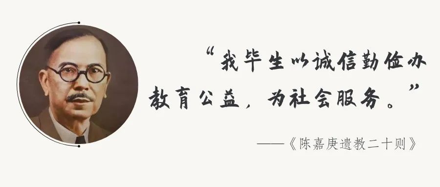 一九二四年,陈嘉庚五十寿辰到来之际,厦大给他寄来祝寿贺礼,陈嘉庚即刻“奉还”,他写信给陈延庭说:“弟非矫情,盖此风诚不可长。否则,互相效尤,大非乐愿。”⑤ 此时,集美学校师生则捐款,要在集美盖一座“介眉亭”纪念校主的五十大寿,陈嘉庚知道后即刻发电集美学校校长:“请取消介眉亭,捐款发回。”他重申自己历来“以实事求是四字为宗旨”,绝不沽名钓誉。他说集美学校今天虽有些许规模,但“学生之实益如何?可裨于社会又如何?”,真要给自己建亭立碑,也要等十年后,“若十年后果有裨益于地方、社会”,则自己“无推辞之客气”。在他看来,人“唯要有相当之功德,然后敢享受耳”。⑥ 由此,我们便可清楚地看到,为什么陈嘉庚捐建了那么多的学校校舍,却从未让一栋楼留下自己或家人的名字。