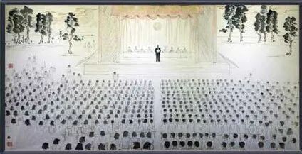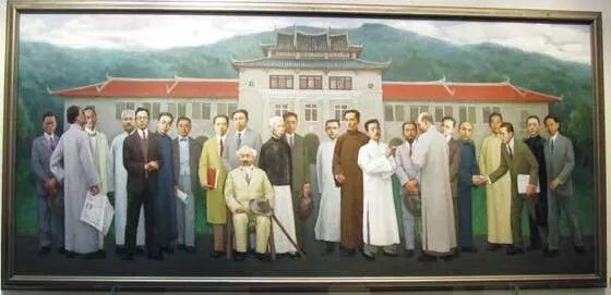 林文庆校长与部分知名教授在一起(油画 作者:邱百平)