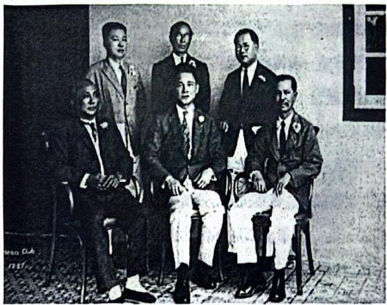 陈嘉庚(前排右)、汪精卫(前排中)、林义顺(前排左)在新加坡怡和轩合影
