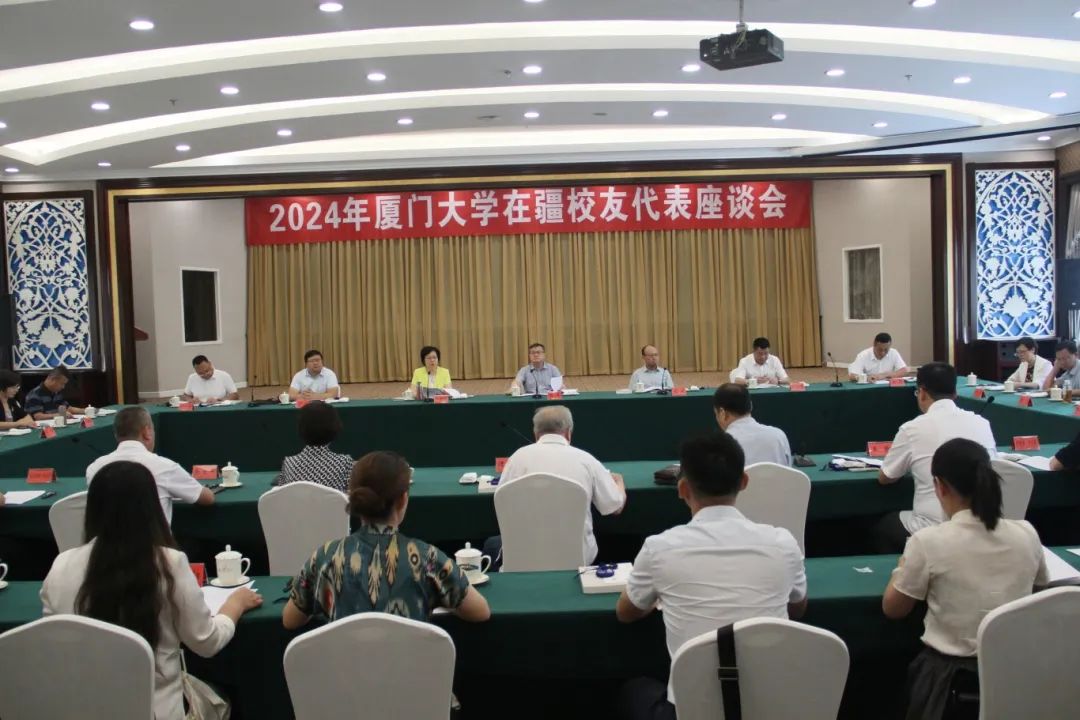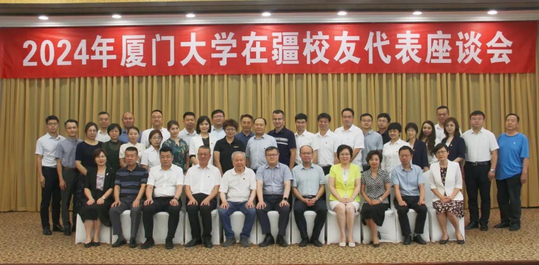 7月27日上午,2024年厦门大学在疆校友代表座谈会在乌鲁木齐昆仑宾馆新闻中心举行。会议由党委常委、副校长邓朝晖主持,26名来自各行各业的在疆校友代表参加,张荣书记一行出席座谈会并与校友亲切交流。
