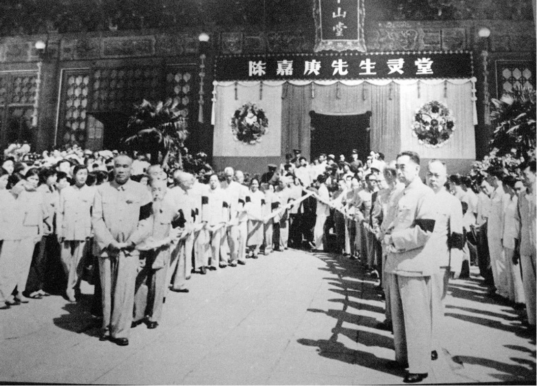 8月15日上午,首都各界公祭陈嘉庚先生八月十五日上午,首都各界在中山礼堂举行新中国诞生以来最为隆重的公祭,陈嘉庚的红漆灵柩置放在绿树丛中,上面盖着中华人民共和国国旗。主祭人周恩来,华侨事务委员会主席廖承志致悼词。公祭结束后起灵,恭行中国传统的执绋礼仪,周恩来总理和朱德委员长一左一右领头执绋,两边的长条白苎绋带在周恩来、朱德、陈毅、陈伯达、张鼎丞、廖承志、习仲勋、沈钧儒、黄炎培、陈姝彤、蔡廷锴、程潜等数十人的缓缓牵引下,将灵柩送上汽车,运到北京火车站,抬上开往厦门的装有冷气的专列灵车。