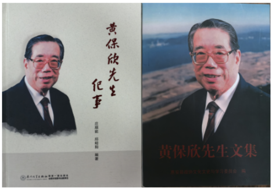 黄保欣学长1923年出生于福建省惠安县,1941年考入厦门大学化学系,在长汀完成学业,之后定居香港。1946年与厦大校友吴丽英缔结姻缘。他勤奋敬业,被誉为塑胶原料大王;他爱国爱港,在担任“大亚湾核电小组”领导人、香港“新机场及有关工程咨询委员会”主席、香港新机场管理委员会首任主席等职位上发挥重要作用,为香港的建设与发展做出了杰出贡献。他荣膺大紫荆勋章,曾任香港基本法起草委员会委员、全国人大常委会香港特别行政区基本法委员会副主任,对“一国两制”事业发展、香港顺利回归和繁荣稳定贡献卓著。黄保欣学长心系母校,非常关心和支持母校的建设与发展,2001年母校建校八十周年之际,伉俪二人慷慨为母校捐赠保欣丽英楼,建筑面积6500平方米,现作为管理学院教学和办公之用;海外教育学院45周年院庆之时,黄保欣被敦聘为海外教育学院名誉院长,热心协助母校解决中医专业毕业生在香港获得职业中医师执照问题。他热心母校校友工作,在校友中德高望重,与许多后辈校友成为“忘年之交”;他两度出任厦门大学旅港校友会理事长,生前一直兼任旅港校友会荣誉理事长,他的美德懿行、丰功伟绩成为厦门大学育人成果的典范。