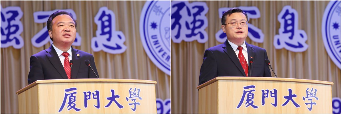 张彦代表学校发布厦门大学建校100周年校庆一号公告并致辞。