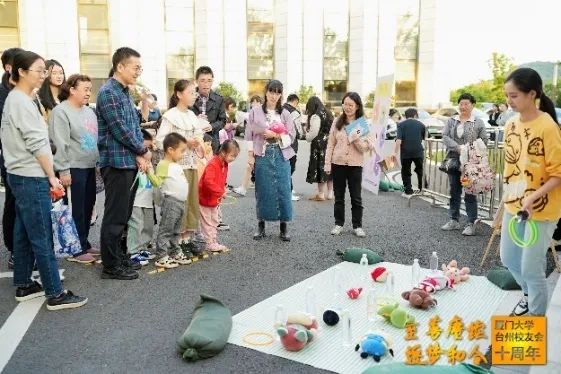 年会游园会主要由怀旧零食摊和游戏区组成。零食摊主题是儿时记忆,校友可以免费拿取自己喜欢的零食。游戏区是本次活动的一大亮点,由套圈圈、萝卜倒了、踢个毽子、你对厦大知多少、扔沙包等5个小游戏组成。大家玩得不亦乐乎,欢声笑语不断。