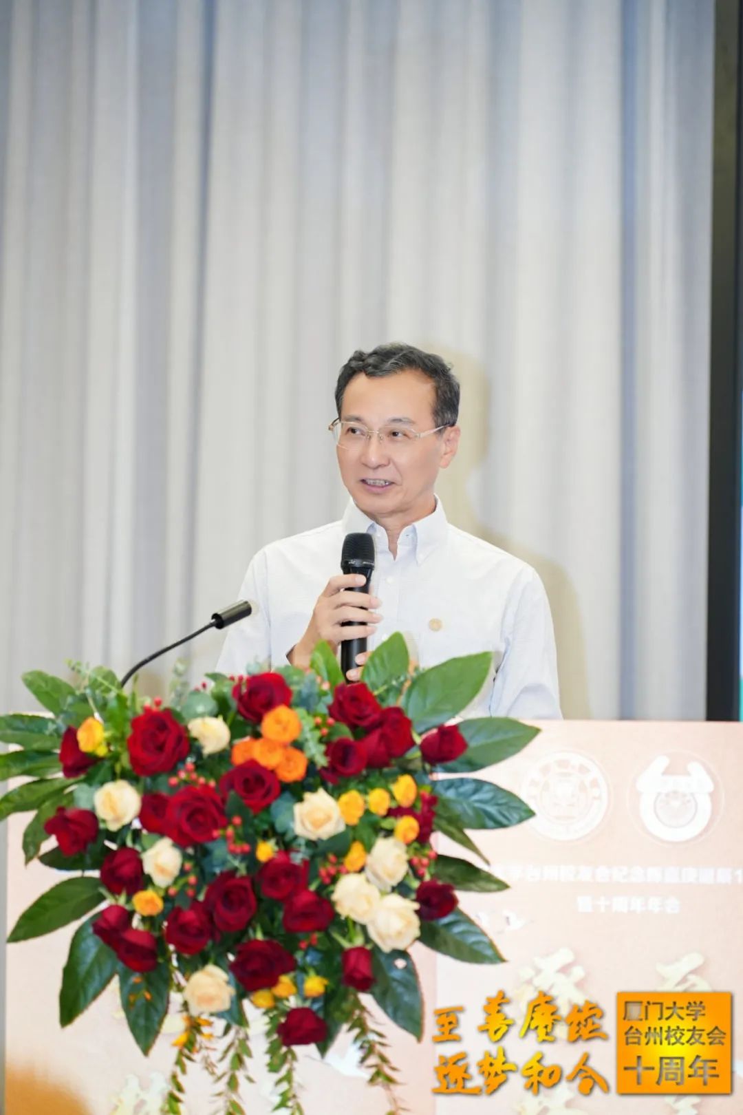 11月2日,厦门大学台州校友会以“至善赓续 逐梦和会”为题在台州椒江举办纪念陈嘉庚先生诞辰150周年暨校友会成立十周年年会。厦门大学党委原副书记、校友总会副理事长赖虹凯,校友总会秘书长王智兰,浙江省厦门大学校友会监事长徐振晓,温州校友会会长虞智勇、副秘书长林煜淇、程新阳,嘉兴校友会副会长冯正华、副秘书长李晨辉,上海校友会副秘书长傅琳,宁波校友会副秘书长李双洋、理事郑立东等来自母校和兄弟校友会的嘉宾以及100余名台州校友、家属共同参加大会。年会由石卫滨和郑爽校友担任主持。