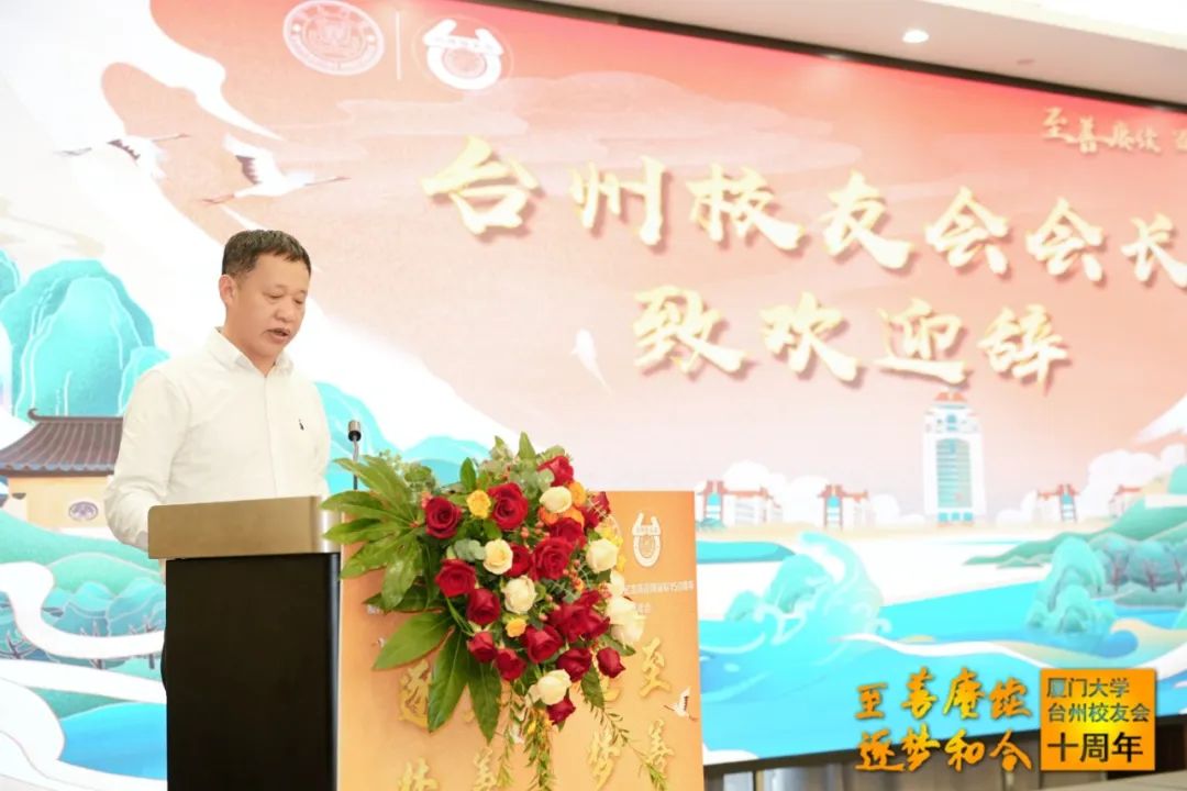 赖虹凯在讲话中表示,台州校友会以丰富有趣的活动将校友及其家属紧密的团结在一起,塑造一个温暖有爱的厦大台州校友大家庭,得到母校和广大台州校友一致好评。他介绍母校最新发展情况,并指出,台州校友在助力母校招生宣传、学生实习就业等方面发挥重要作用。他勉励台州校友会继续加强自身建设,立足校友需求,为校友赋能、为台州经济社会发展作出更大贡献,并鼓励和引导更多校友参与到母校的发展建设中来,为母校与时俱进建设世界一流大学贡献力量。