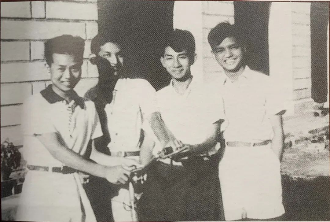 1948年,王克铭(右二)与同学在厦门大学宿舍楼前