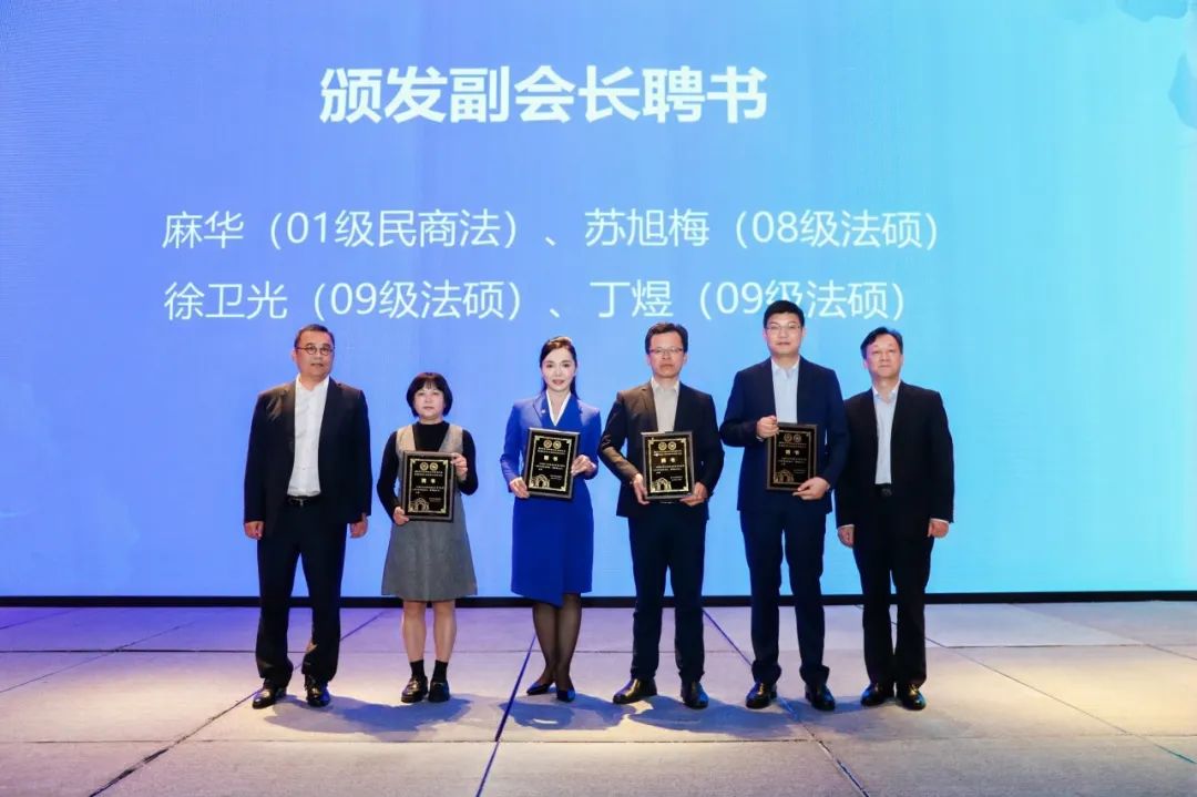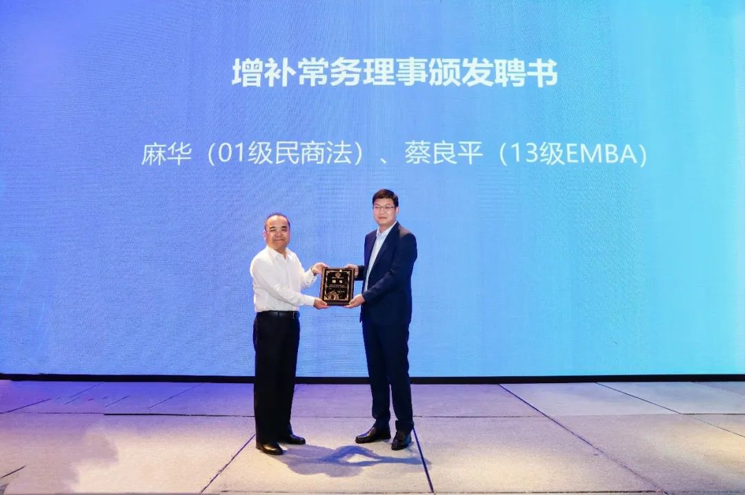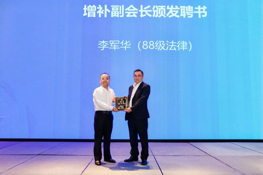 增补聘书,荣誉加冕在热烈的掌声中,李军华副会长、麻华常务理事、蔡良平常务理事、陈一飞理事等四位校友接受了增补颁发的聘书。