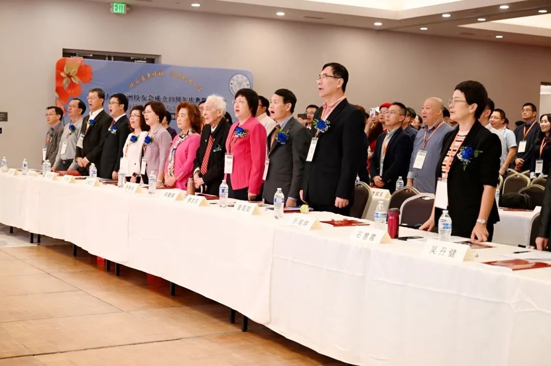 大会在激昂的校歌声中拉开帷幕。全体参会嘉宾、校友共同向过去十年来离世的美洲校友会先贤致默哀礼。