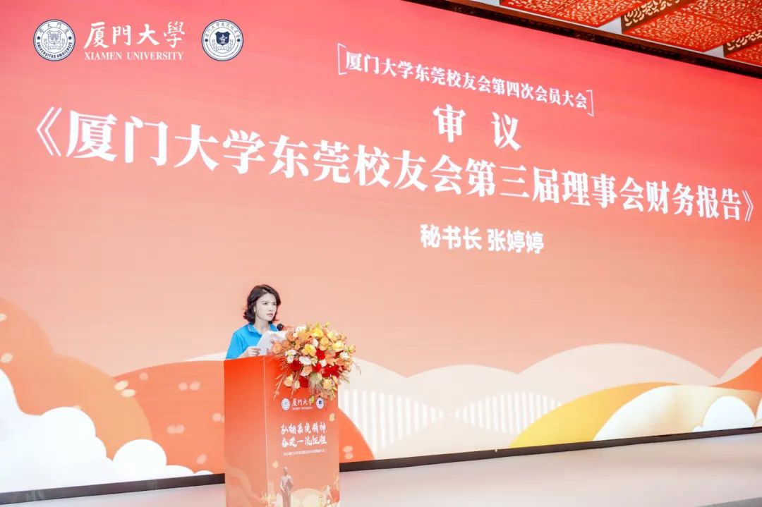 第三届理事会理事长林海川做理事会工作总结,回顾近几年东莞校友会的工作和成绩。他表示,近年来东莞校友会组织丰富多彩的活动,促进在莞校友沟通合作;加强与母校的联系,助力母校建设发展,曾获评第一届厦门大学校友会先进工作单位。他代表理事会向母校、校友总会、兄弟校友会和广大校友的关心支持表示诚挚谢意!向理事会、秘书处各成员校友的辛勤付出表示由衷感谢。