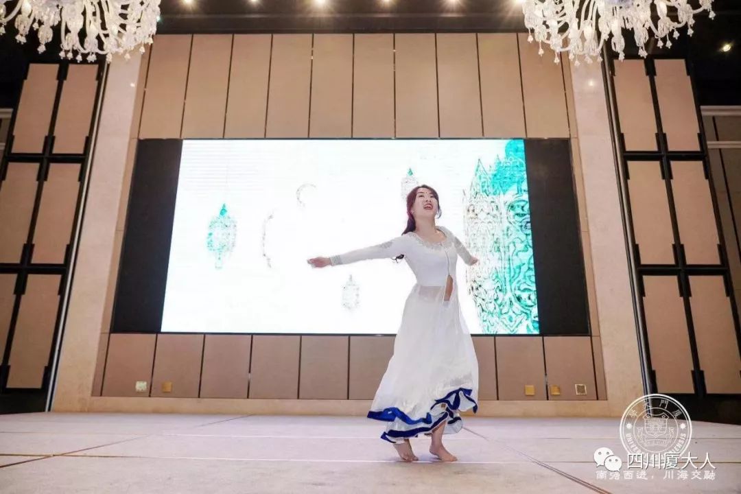晚宴上,校友白平、萧廷波(2004级政治系)、陈媛(2005级历史系)、杨红梅(2007级经济系硕士)、余艾雯、黄乾龙(2016级法学硕士)共同朗诵白平原创的诗歌《那些日子》,将大家的思绪再次带回到“听得见鹭江远远近近的潮音,望得见五老峰舒舒卷卷的云影”的美好时光。校友李生威(2015级法语系)不亚于专业歌者的法语版《卡门》主题曲引得众人声声喝彩。校友吴莹(98级会计系)带来的《印度合伙人》舞蹈sayyaan更是将晚宴推向高潮,其优美的舞姿和欢快的旋律无不表达着厦大人对母校的炽热感情。