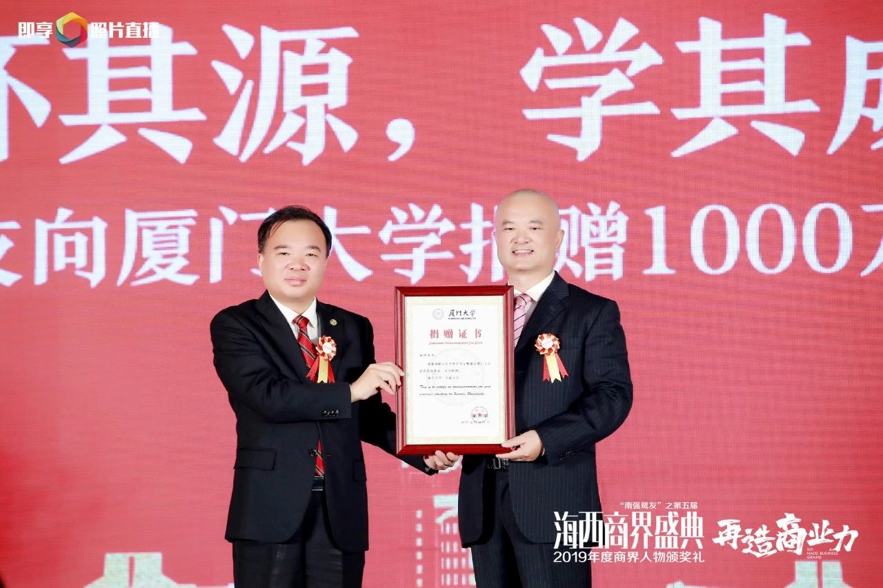 2019年12月31日,“南强鹭友”之第五届海西商界盛典暨2019年度商界人物颁奖礼成功举办。本届盛典由厦门大学厦门校友会、海西商界共同主办,并得到厦门大学校友总会、中共厦门市委统战部、厦门市工商联的大力支持。